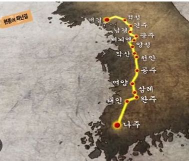 이 때 지채문이 선뜻 앞에 나아가 현종의 호위를 자청하게 되고 현종은 이에 감동합니다. 금군 50명, 지채문, 채충순 등과 금군 50명, 추가로 왕후와 후궁등의 무리가 드디어 몽진길에 나서게 됩니다. 이 몽진길은 한국사 최고 고난의 몽진길로 알려져 있습니다. 나주까지의 길에 별의 별일이 다 있었지요.